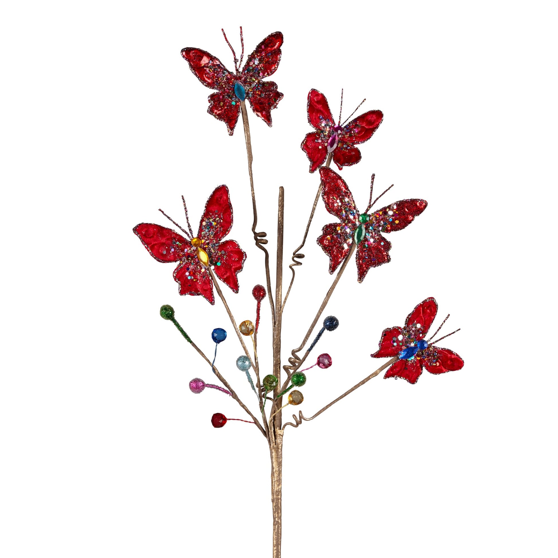 Add some colour and sparkle to your decoration range with our stunning, flexible butterfly stems. The incredible quality of this collection is not to be missed, and the 5 pink butterflies are decorated with sequins and jewels plus there are colourful berries for extra sparkle.