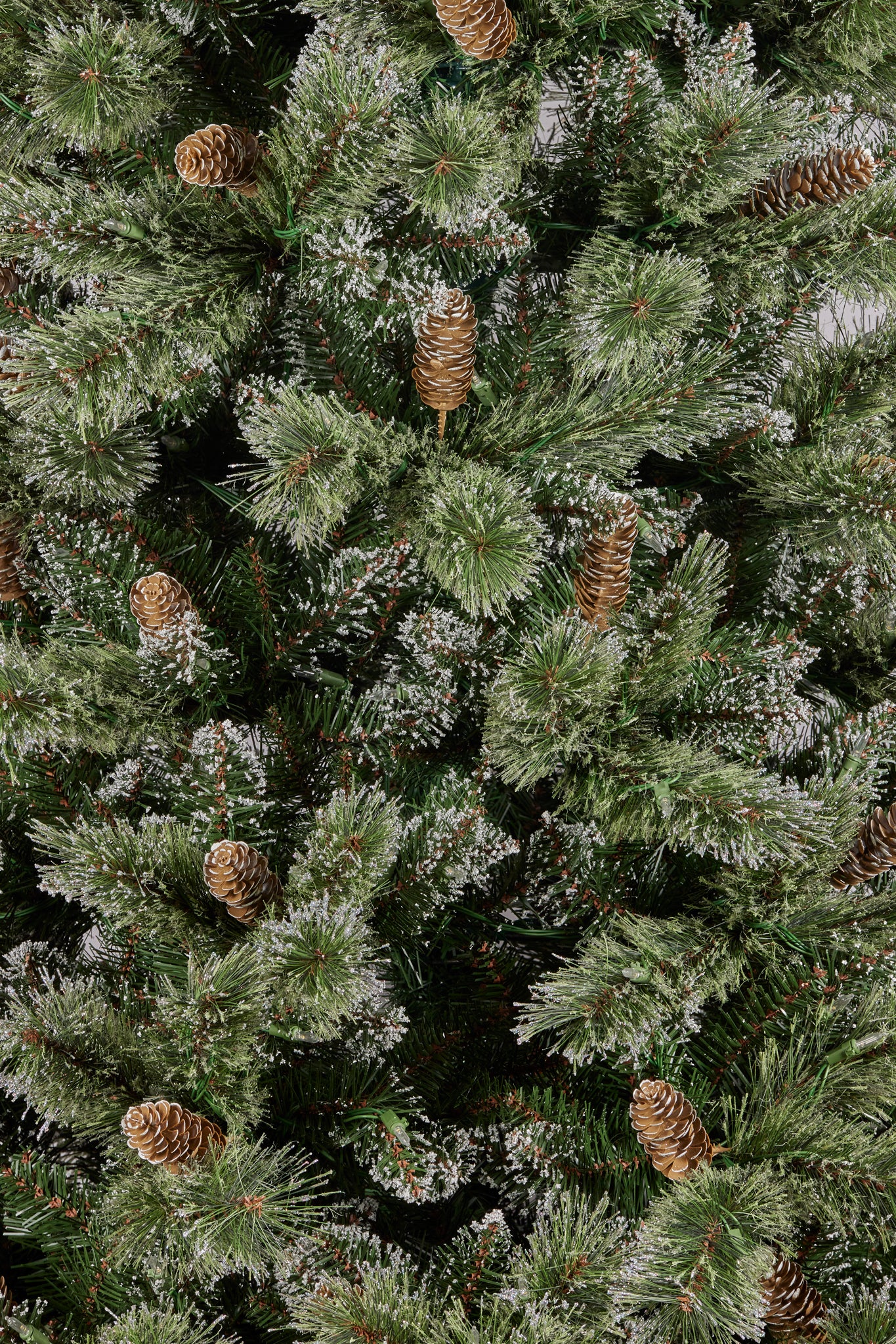 This magnificent 7.5 foot Christmas tree has a delightful mix of foliage, combining the beauty of pine and cashmere tips. It is the ideal size for most homes and its elegance is heightened by the inclusion of pine cones and a covering of sparkling glitter. Plus it has plenty of built in lights to shine through the festive season so it makes a great display feature.