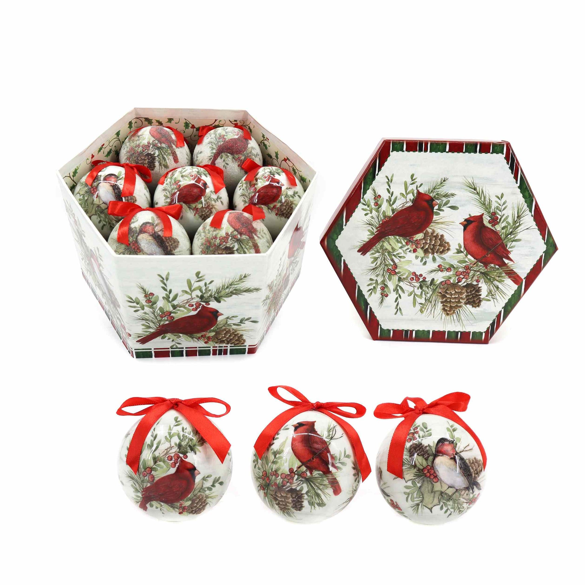 Bauble Box 7.5cm x 14 Cardinal and Red Robin