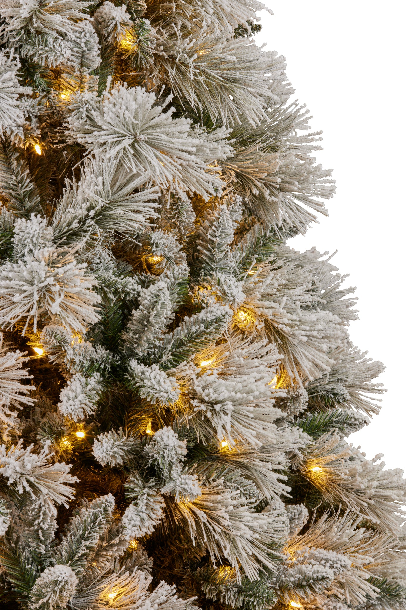 The Majestic Snow range is an ideal solution for the budget conscious with a collection of trees, wreaths and garlands with a flocked finish. This 6 foot tree has a beautiful snowy finish and thick foliage with built in lights- and they are multi function so you can choose 1 of 9 settings.