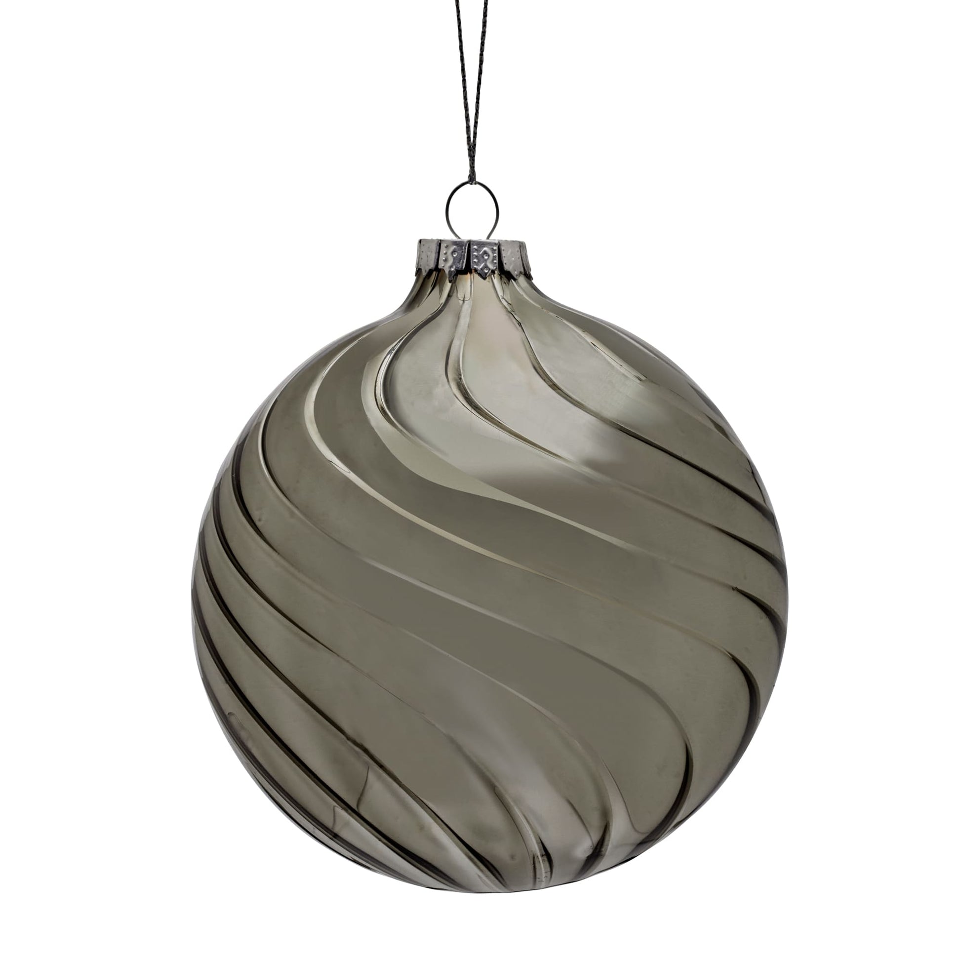 This 10cm ornament is great for a modern finish to decorating a tree. These gorgeous glass baubles have a metallic silver wave finish.