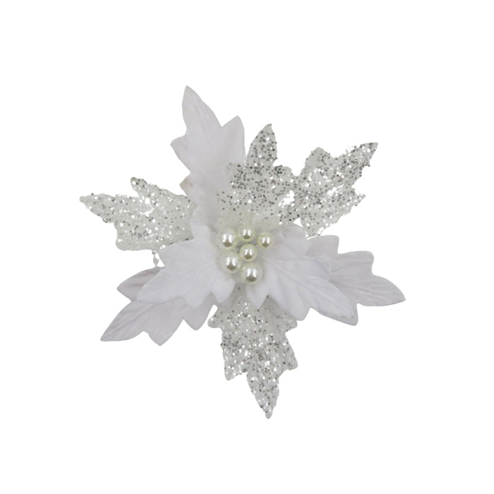 Poinsettia White Ice Petals clip on