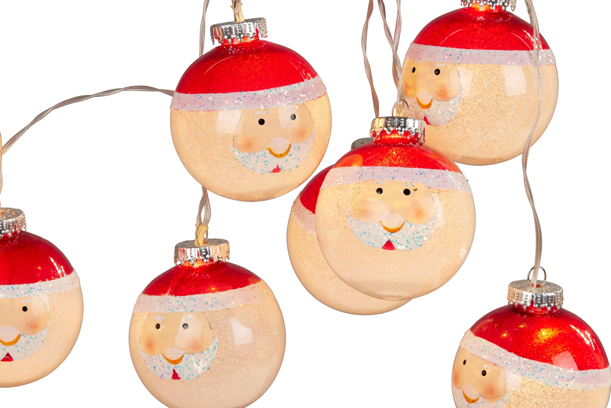 If you’re looking for fun in your Christmas displays, this 183cm garland with lights and a mix of red and white Santa head baubles is just the thing. It’s ideal for trees, shelves, tables and more.