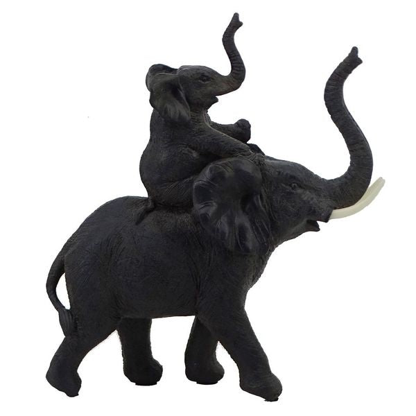 Savanna Resin Black Elephant Carrying Child