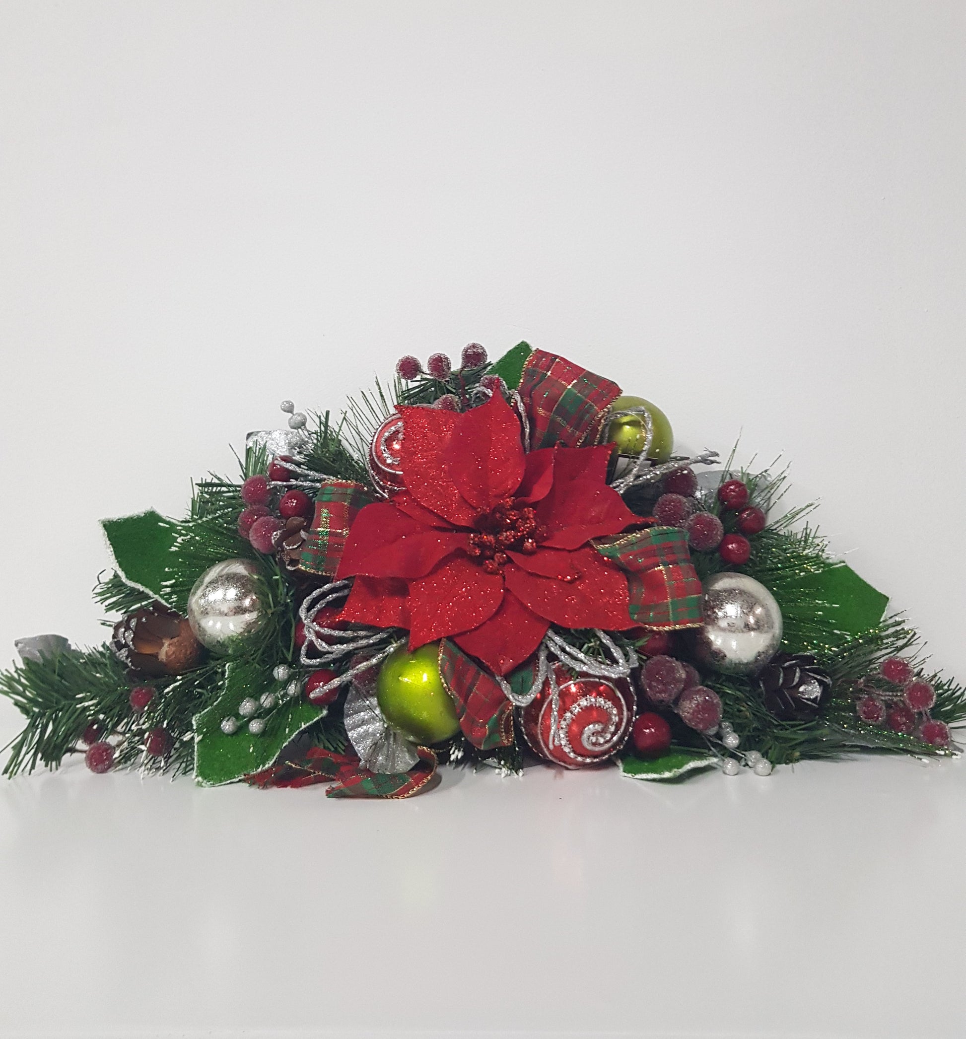 Combination of Red Poinsettia Flower and Christmas Baubles