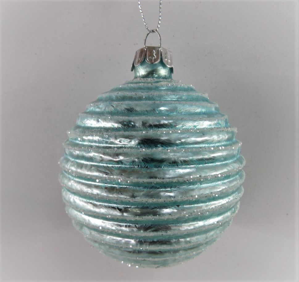 Finished in beautiful teal blue, this textured, striped bauble will make a great addition to your Christmas collection.
