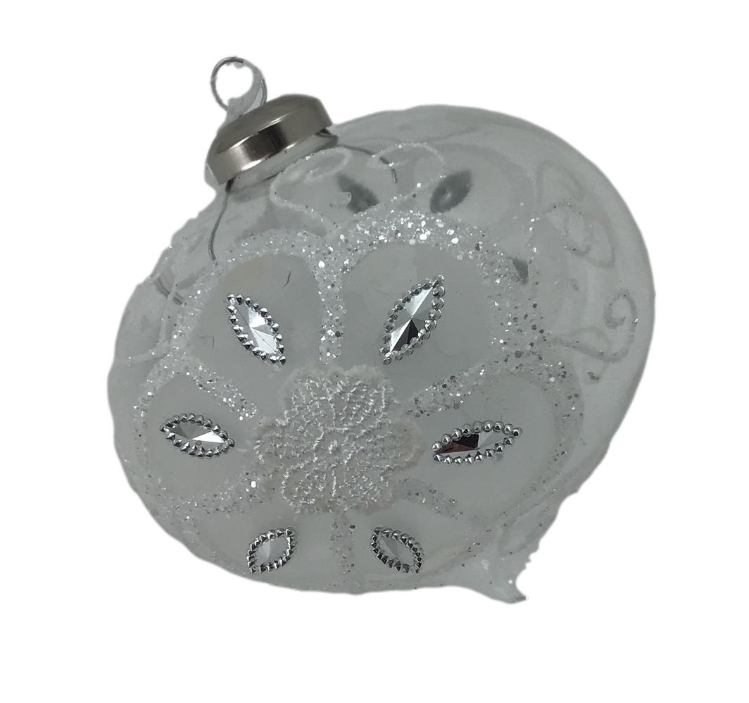 White Silver Floral Hang Drop Ornament