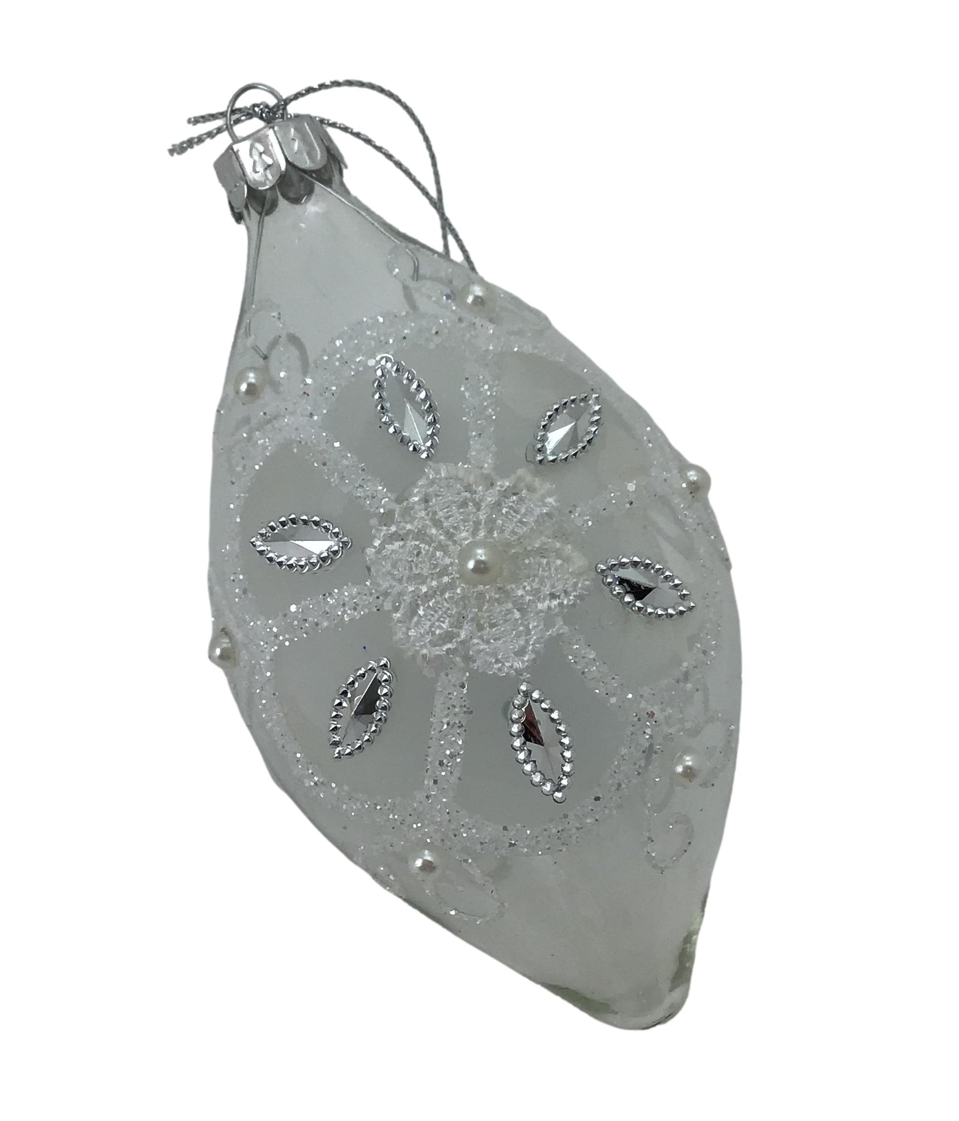 White Silver Floral Long Drop